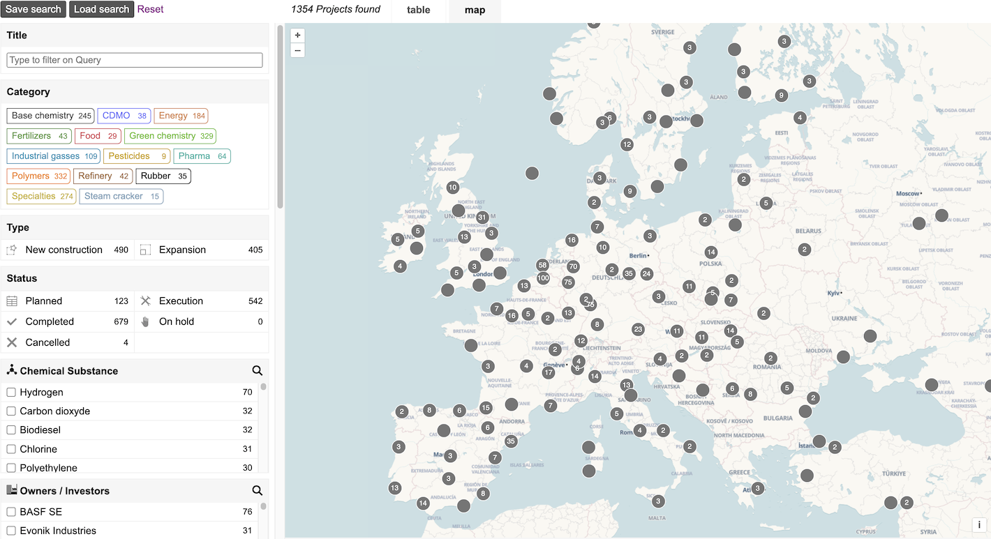 Find everything on Chemical Parks, Plants, Investments, Projects, Substances