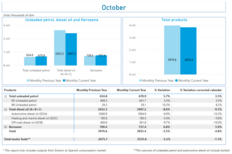 Deliveries of kerosenes exceeded 757,400 cubic metres, representing a 6.8% increase compared to October 2024.